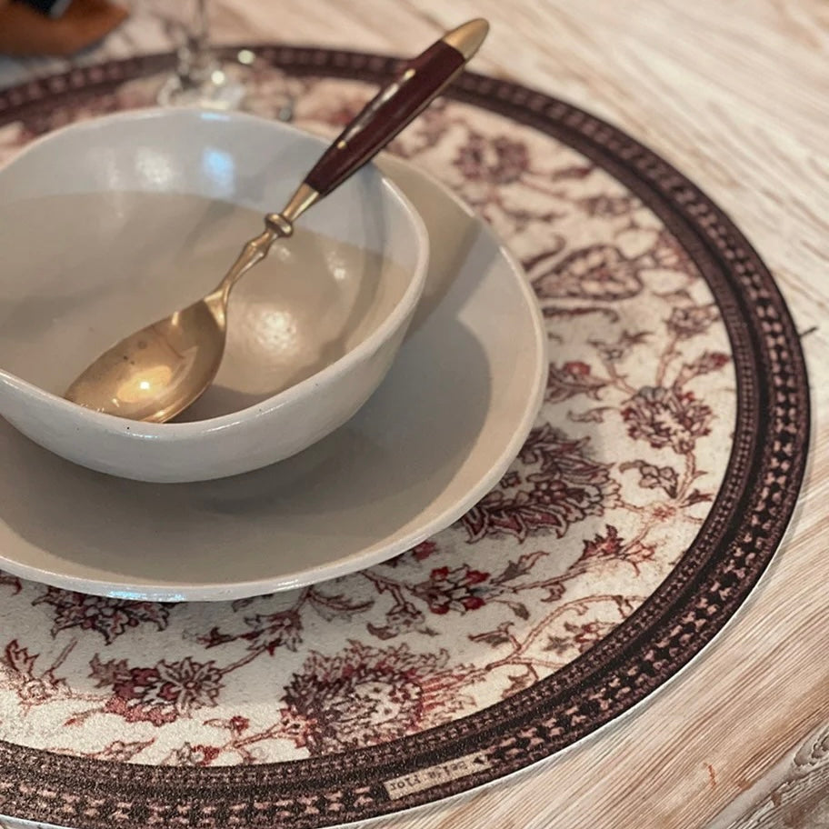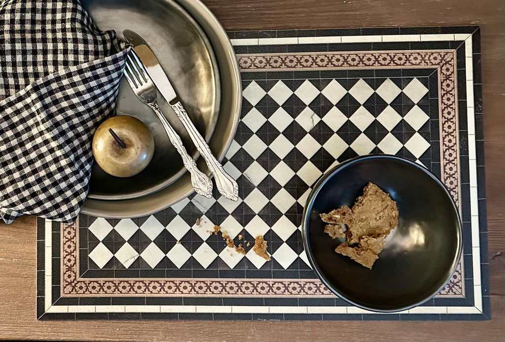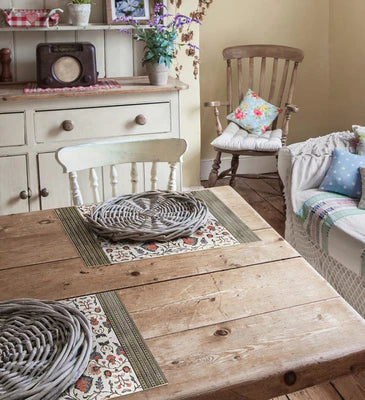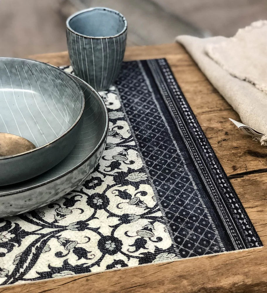 Beautiful, hard-wearing vinyl placemats and floor mats inspired by the rich patterns of vintage ceramic tiles. Available in a wide range of sizes.