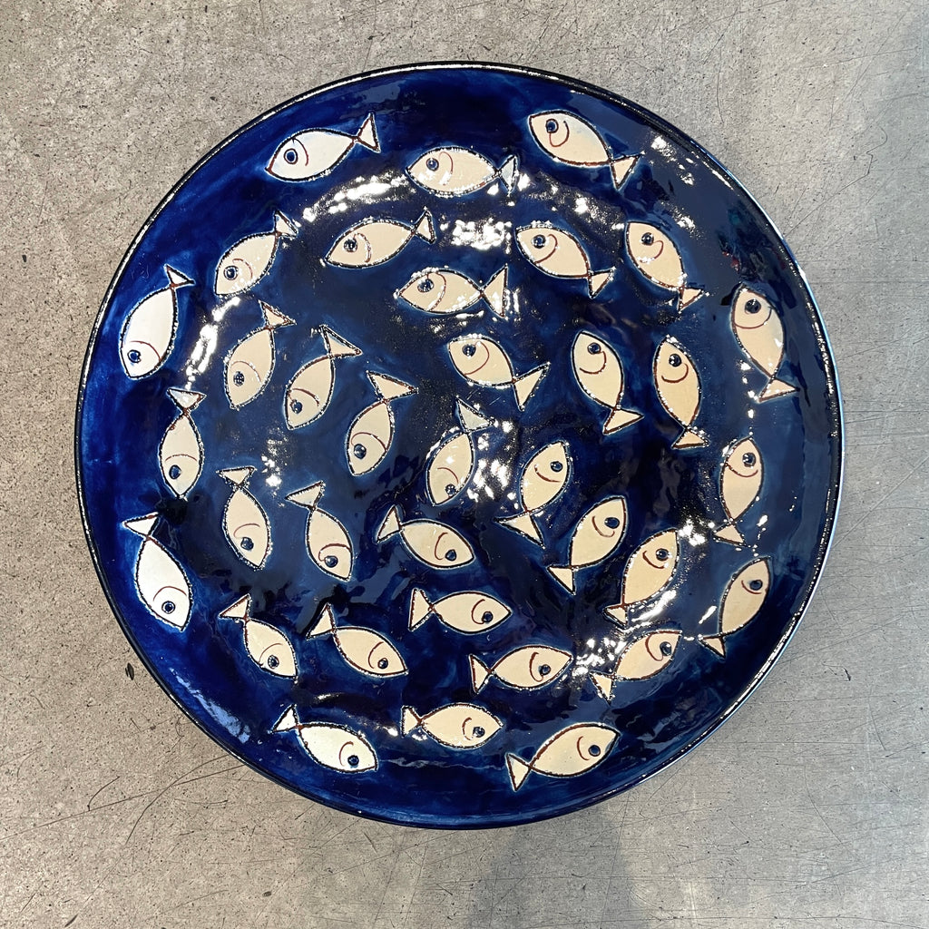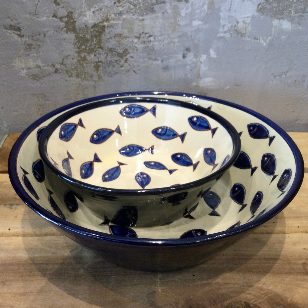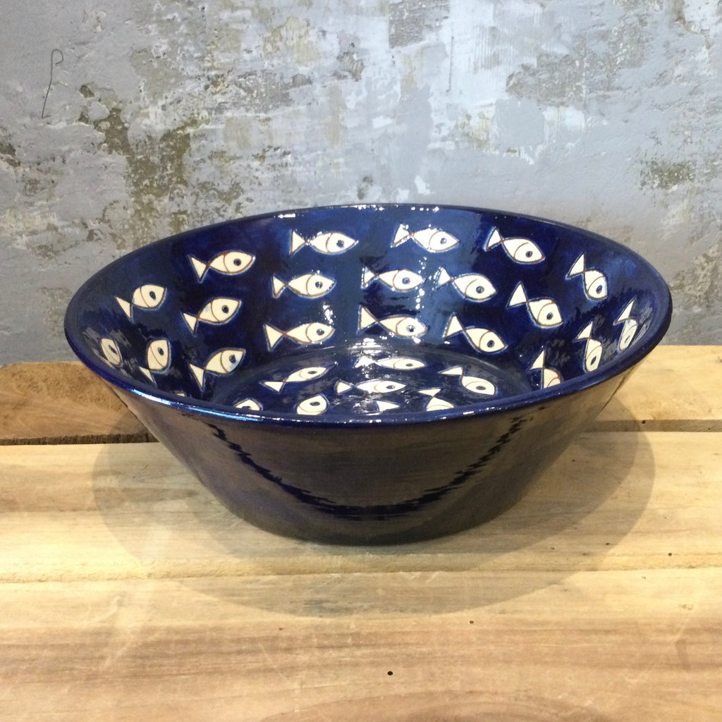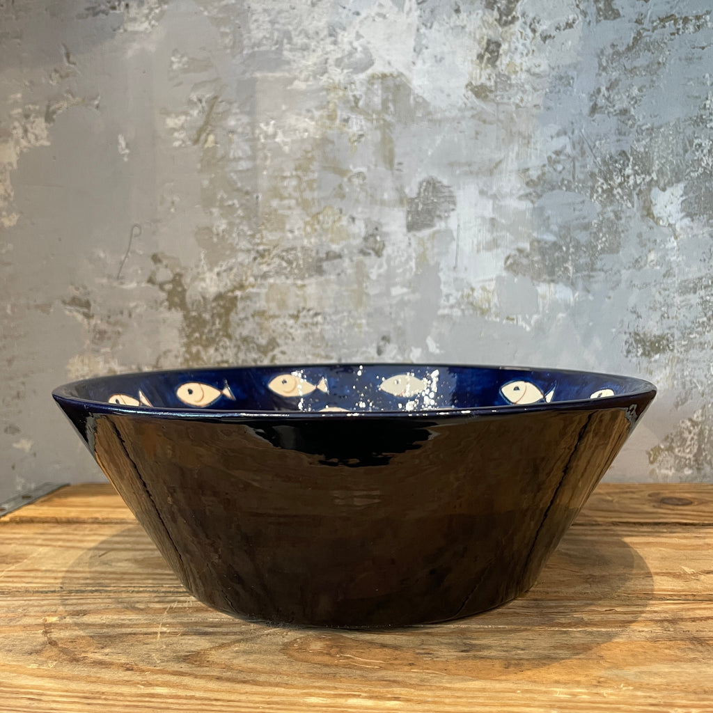 Spanish Fish on Blue Conical Bowl 24cm